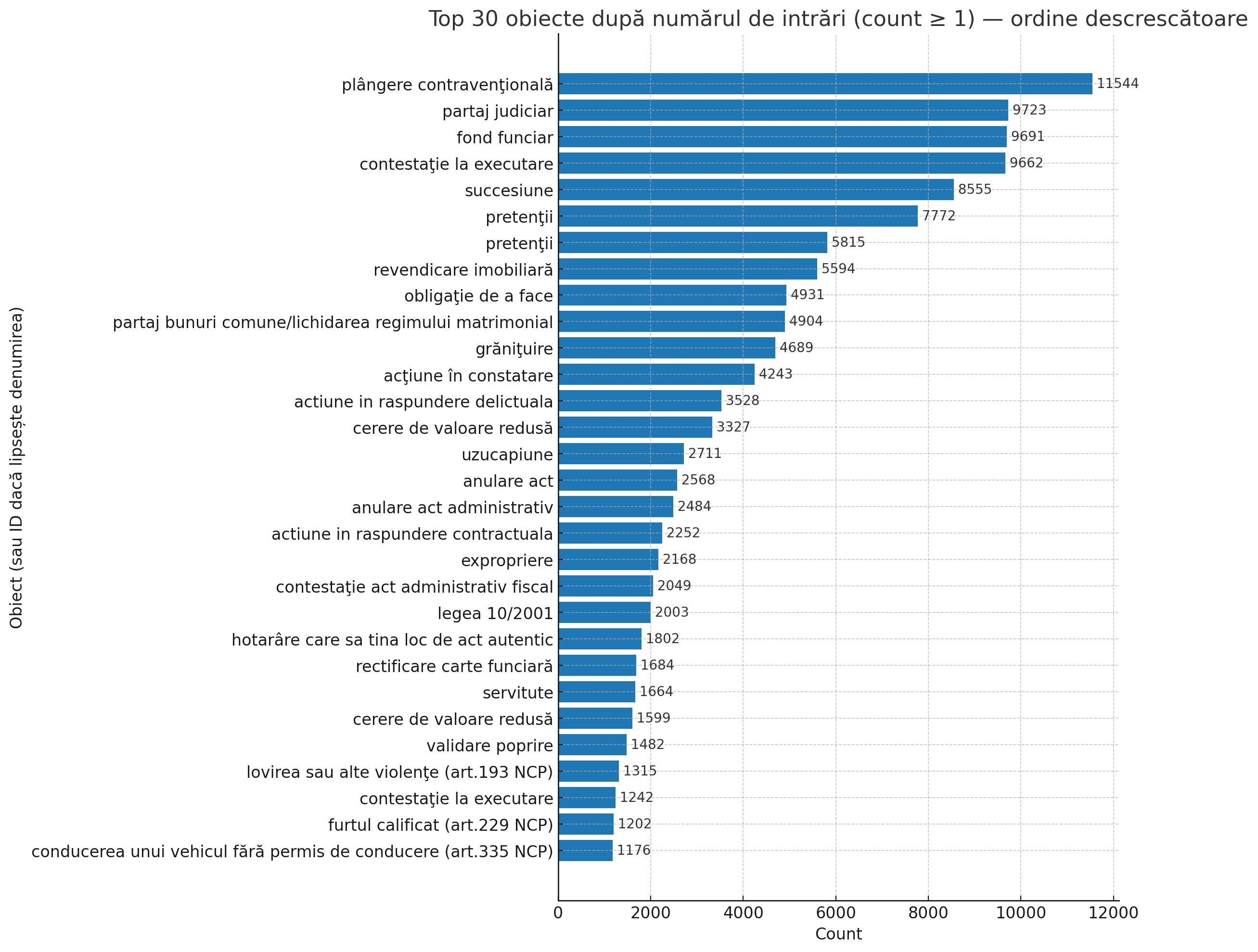 It is evident that the term without a user (in this case, the case number is unnecessary), but this aspect can be easily rectified if we consider that: a) the number of cases in a specific court, with a specific subject, on a specific date is under 10, even in the busiest courts. b) The dosare.just.ro system allows advanced searches using an API, and most case search tools now also permit advanced searches.